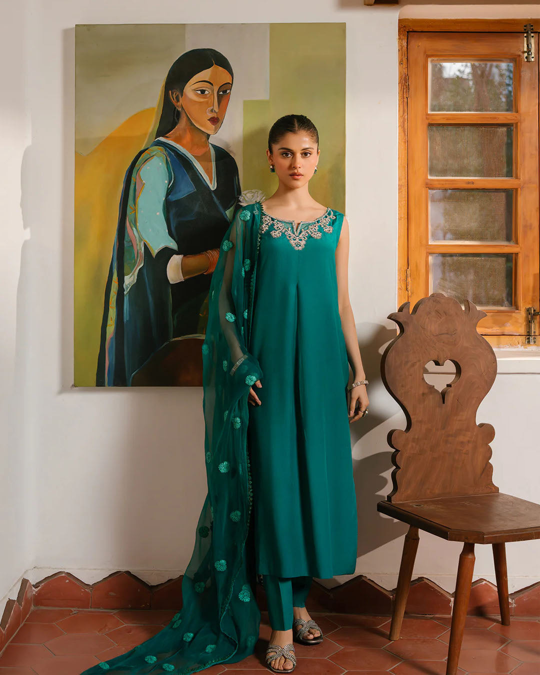 Shirt- Chiffon heavy embroidery with hand embellishedTrouser - Raw Silk Dupatta- Chiffon Dupatta with Embroidery Crafted...