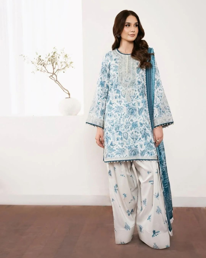 Shirt- Lawn Embroidery ShirtTrouser - Lawn Trouser with Embroidery Dupatta - Chiffon Dupatta with Embroidered...